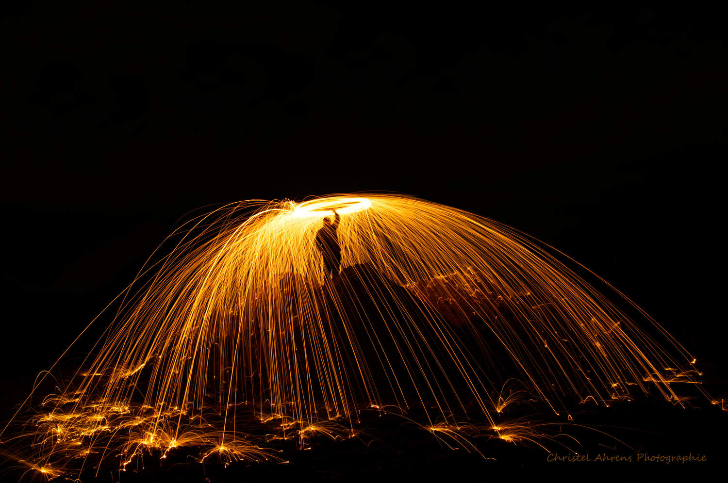 Bild 1: glühende Stahlwolle – Kamerastandort: Kotflügel eines Radladers